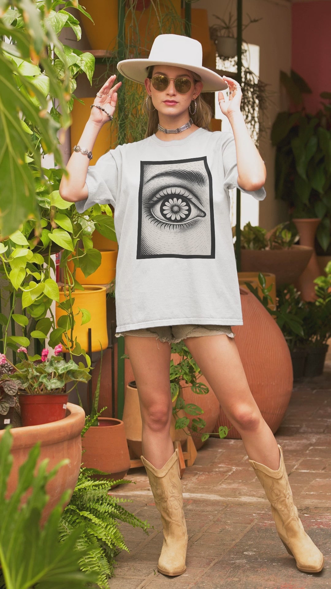 A flower never blinks—but this one sees everything. "Eye of the Daisy" is where art meets nature’s quiet power. This bold design is perfect for plant lovers, dreamers, and deep thinkers who see more in a bloom than meets the eye. A unique conversation starter for lovers of symbolism, flowers, and mysterious garden energy.