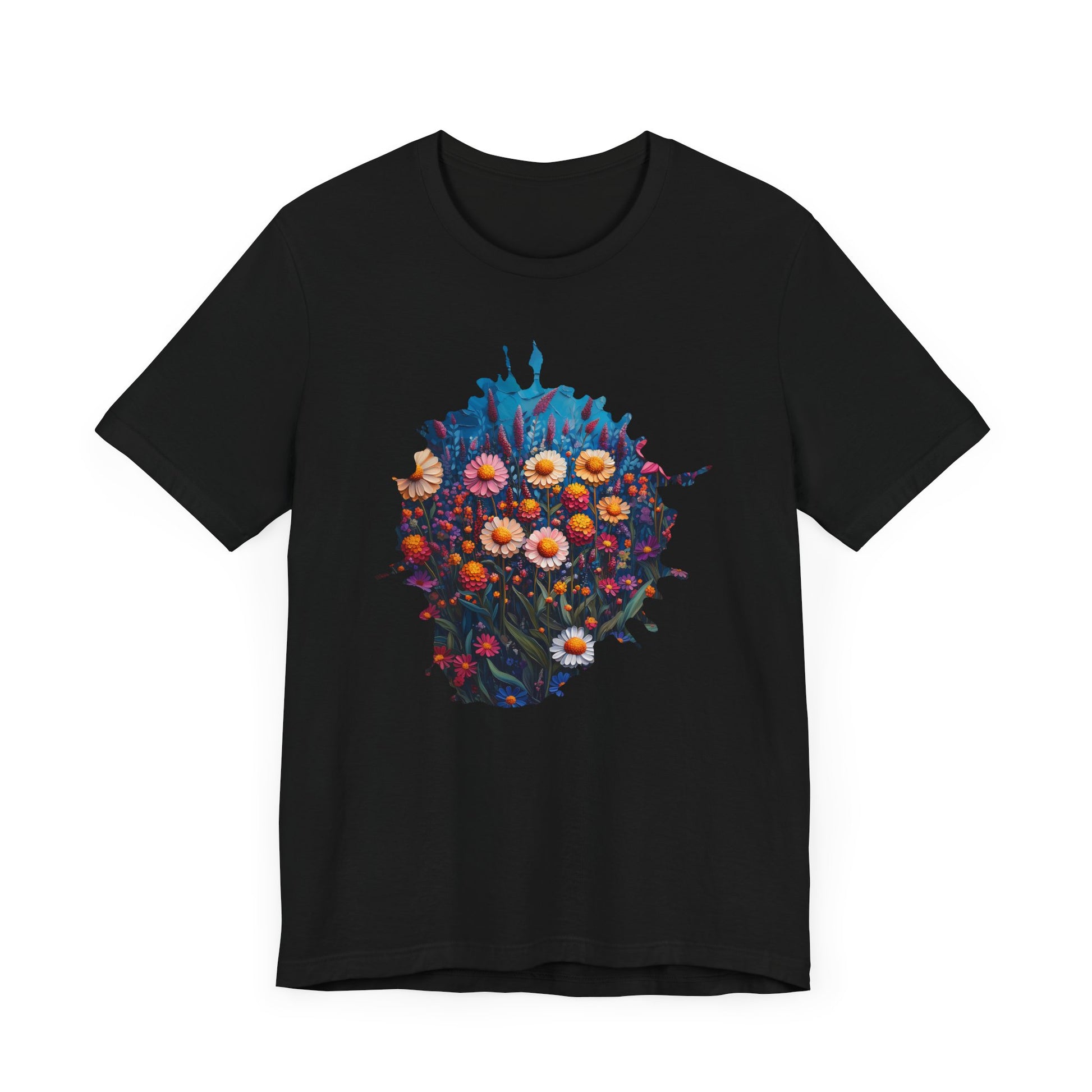 Step into a world of color and nature with this stunning wildflower T-shirt! Featuring an intricate and artistic floral explosion set against a rich, mystical backdrop, this design blends botanical beauty with a touch of fantasy. Perfect for nature lovers, artists, and free spirits who embrace the magic of the wild.