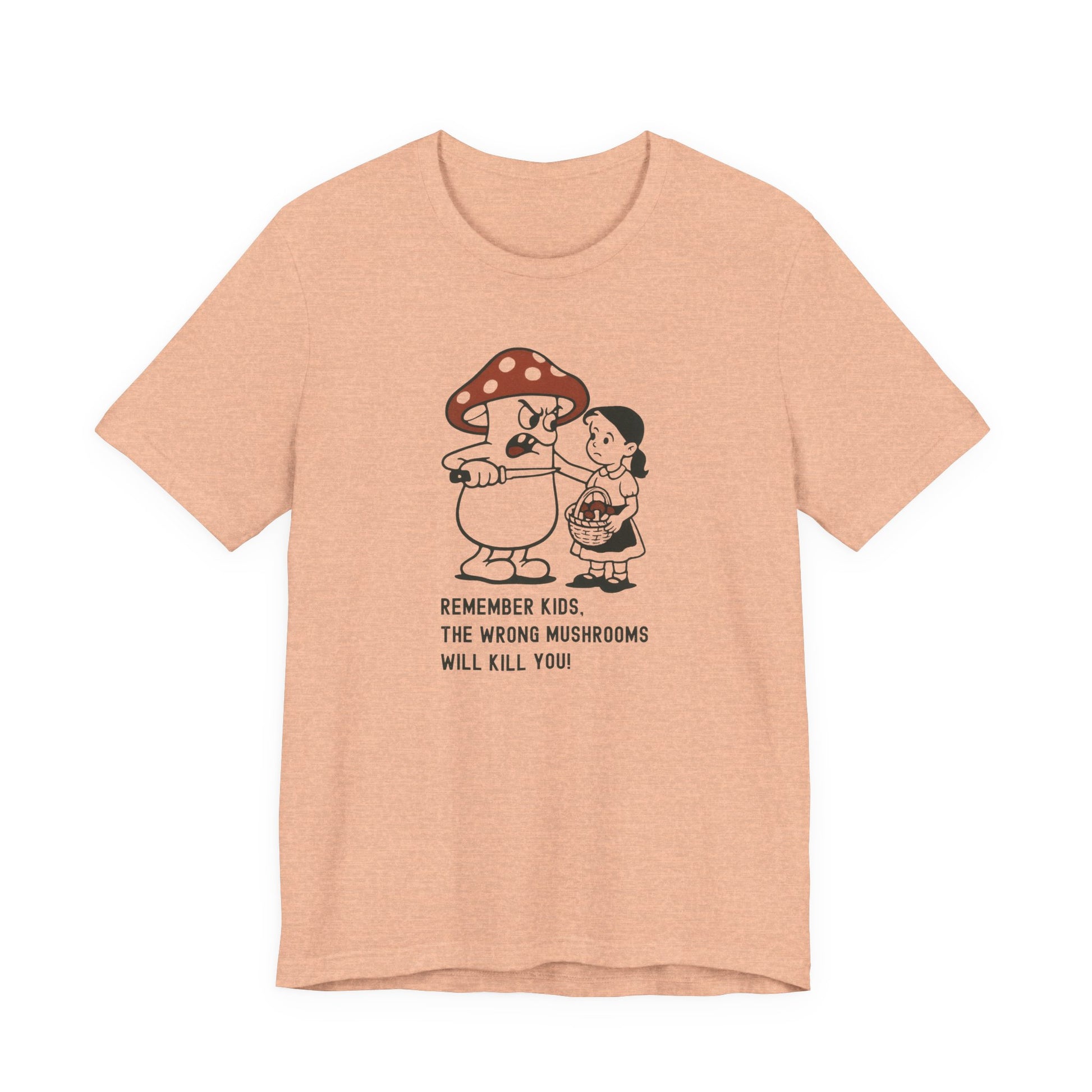 Bold, retro, and a little darkly funny, this “Remember Kids, the Wrong Mushrooms Will Kill You!” unisex T-shirt is perfect for mushroom hunters, foragers, and nature lovers who appreciate humor with a cautionary twist. Designed with a vintage-style cartoon mushroom graphic, this tee combines comfort, style, and a message every fungi fan knows is true.