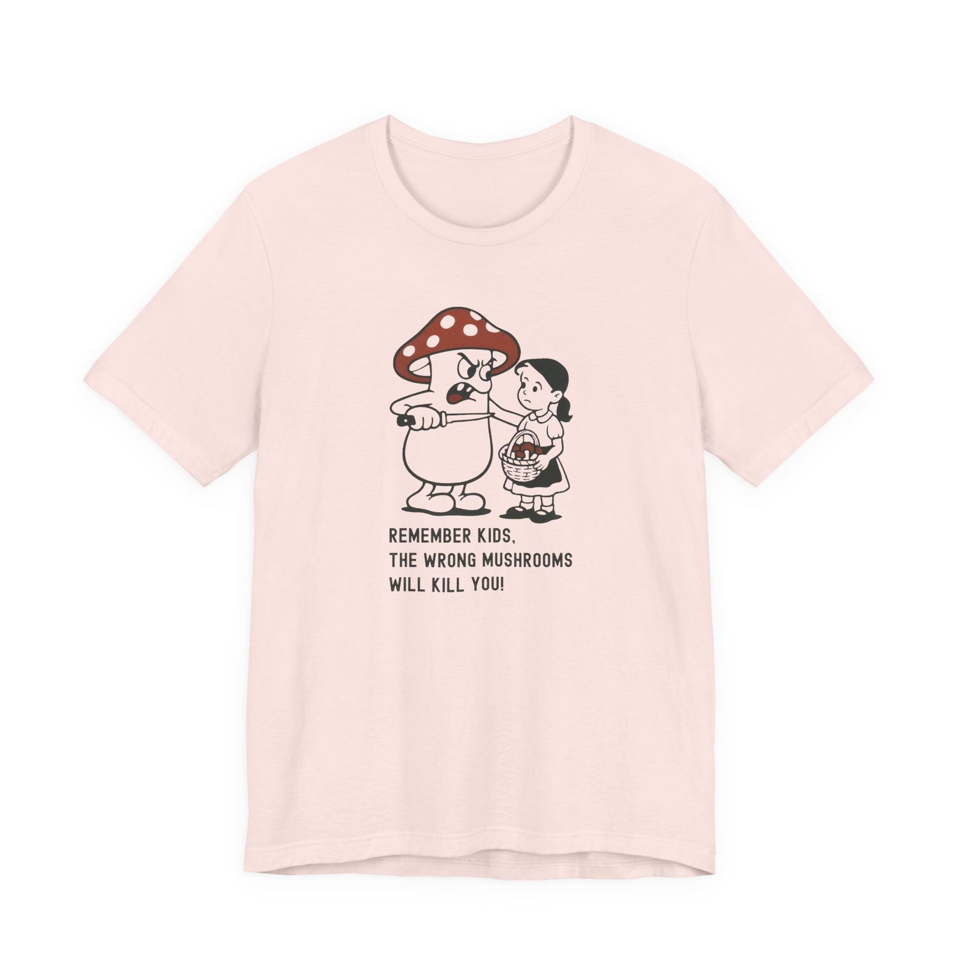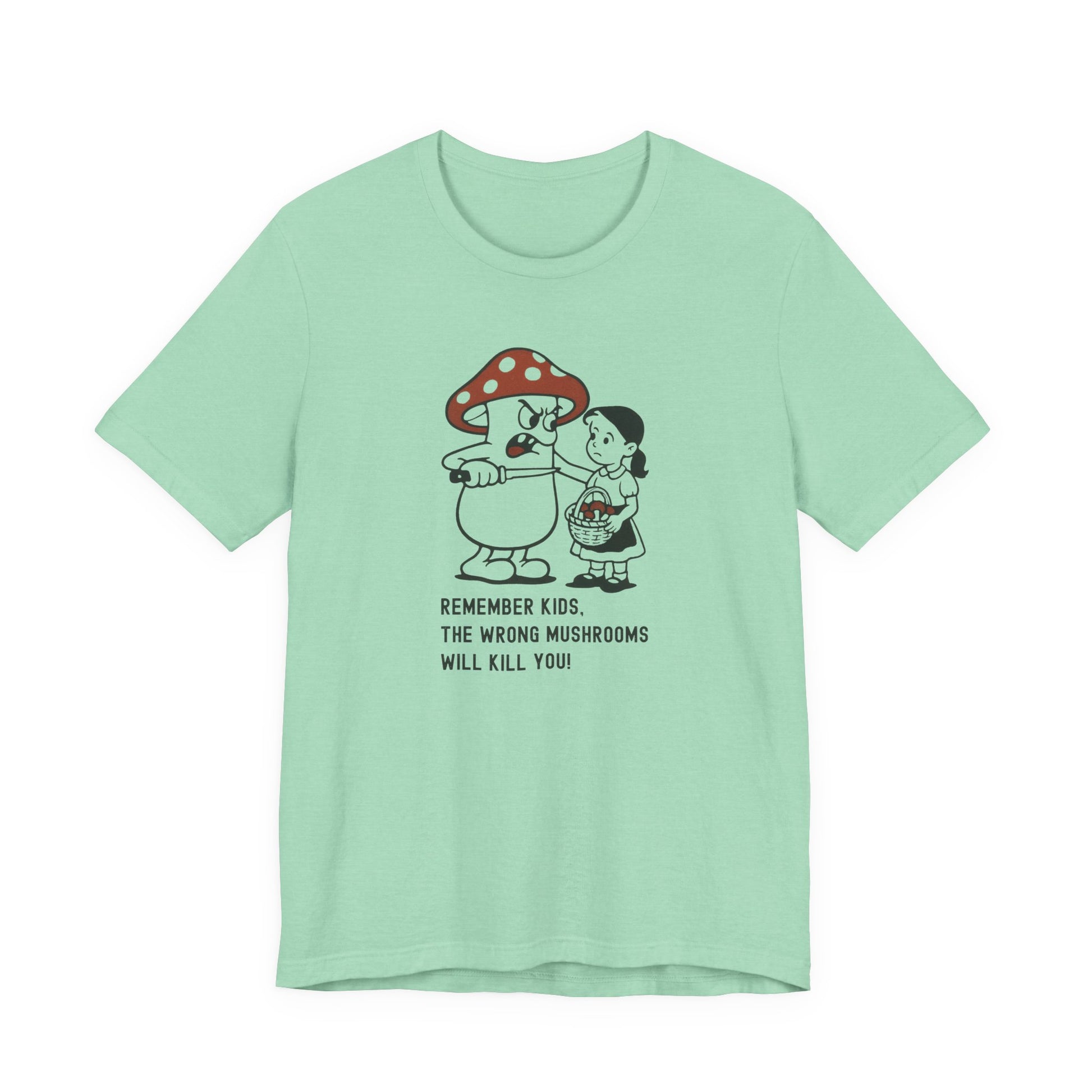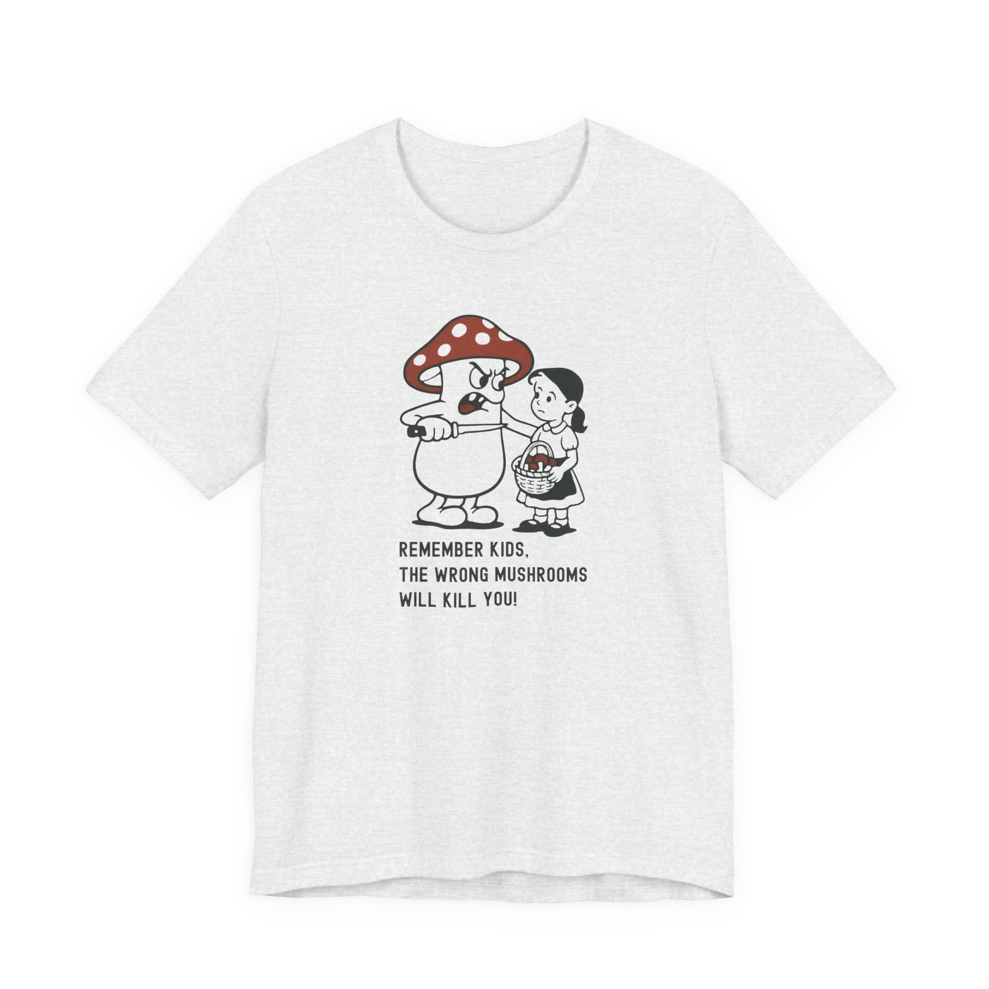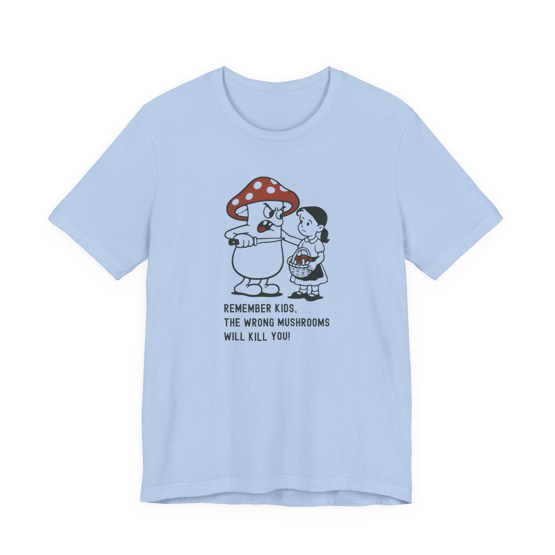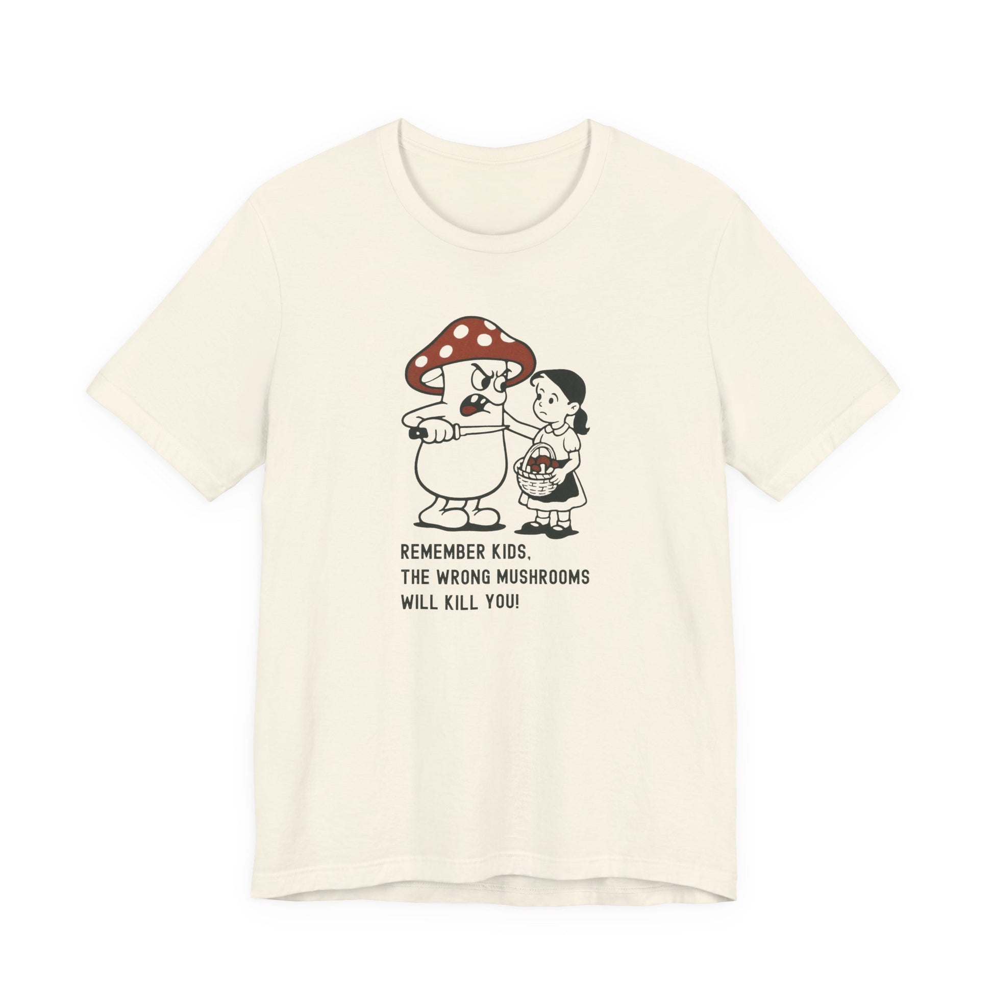 • Print: High-quality “Wrong Mushrooms Warning” cartoon graphic with bold clarity and detail.